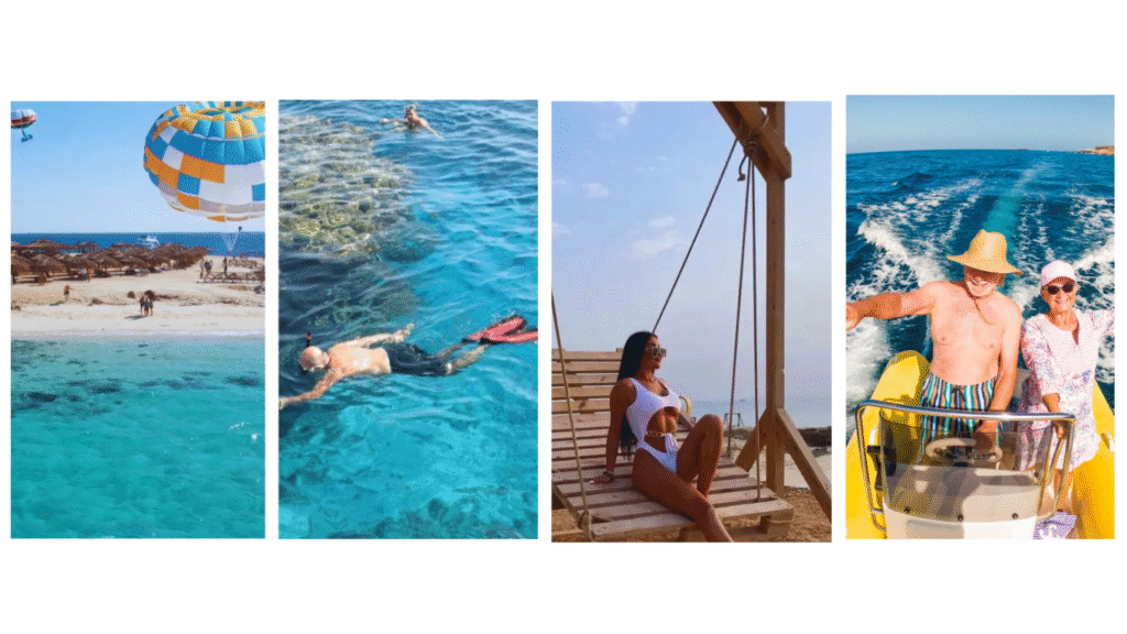 Start your day with an easy hotel pick-up and head straight to the marina, where your sleek speedboat awaits. Within 15–20 minutes, you’ll be gliding across the sparkling Red Sea to reach the breathtaking Magawish Island.